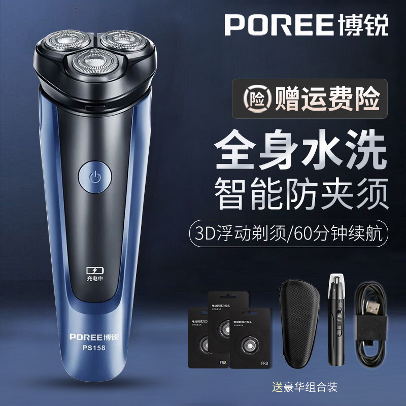 博锐剃须刀电动男士水洗便携旋转式刮胡刀Type-C充电式正品胡须刀