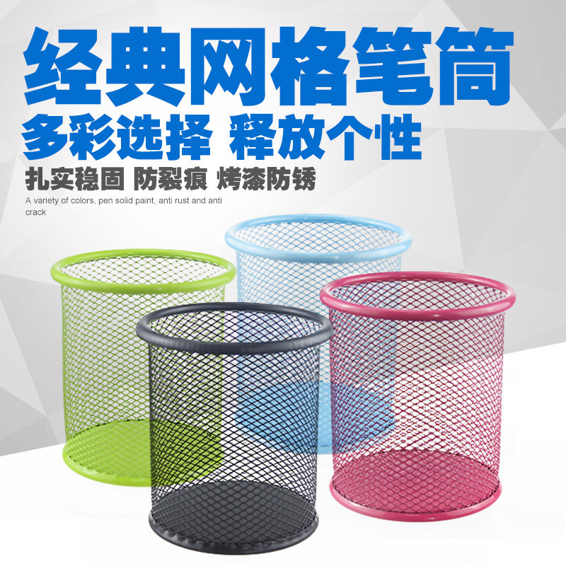 创意办公笔筒肥布金属网格圆形笔筒铁丝网状笔筒桌面文具办公用品