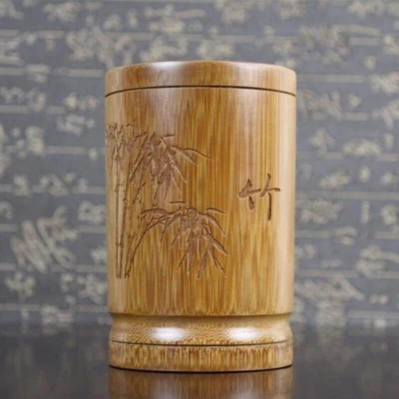 谷蜂竹制笔筒竹雕毛笔筒文房四宝碳化色复古创意办公笔筒收纳盒1