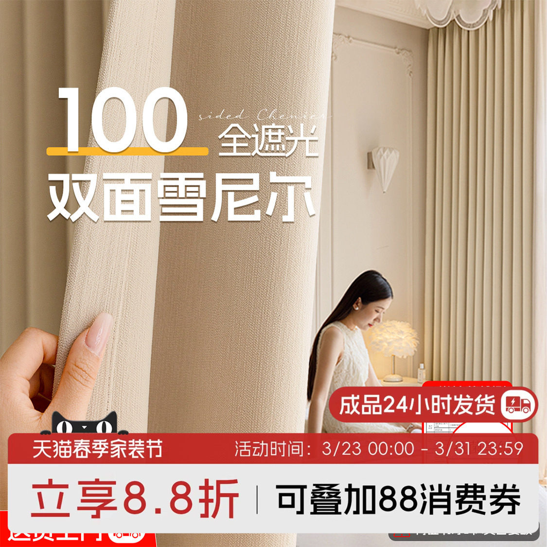 卧室窗帘全遮光2026新款客厅雪尼尔帘遮阳免打孔安装高级感防晒布