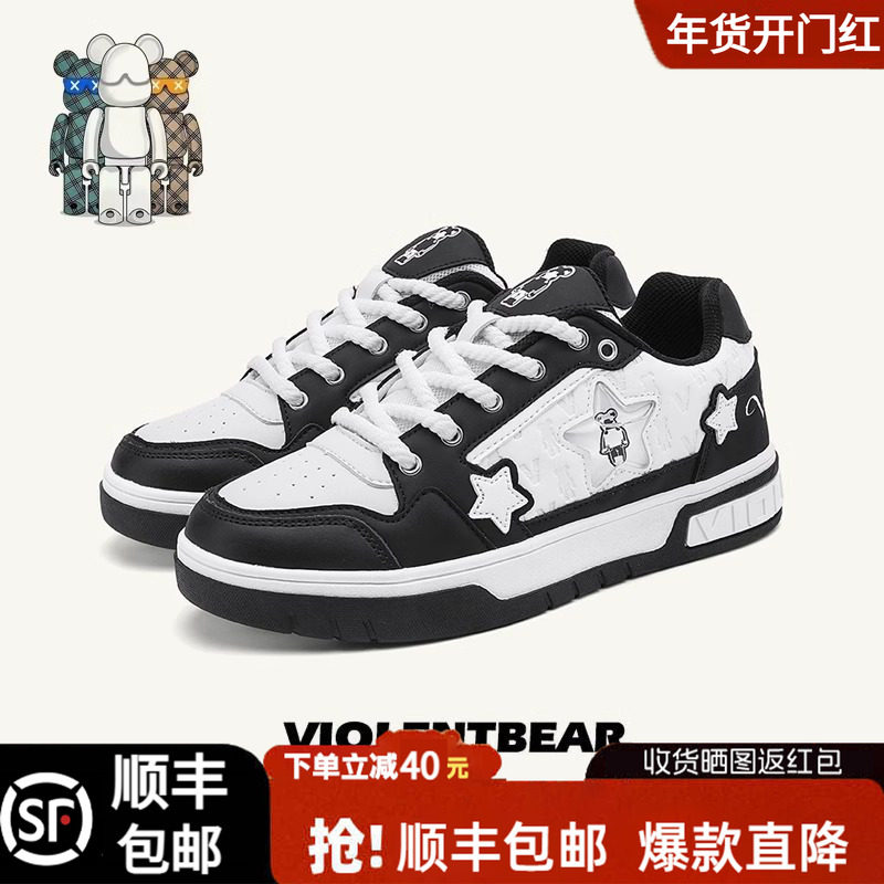 暴力熊2025款冬季新品男鞋女鞋低帮板鞋荧光星星休闲透气情侣板鞋