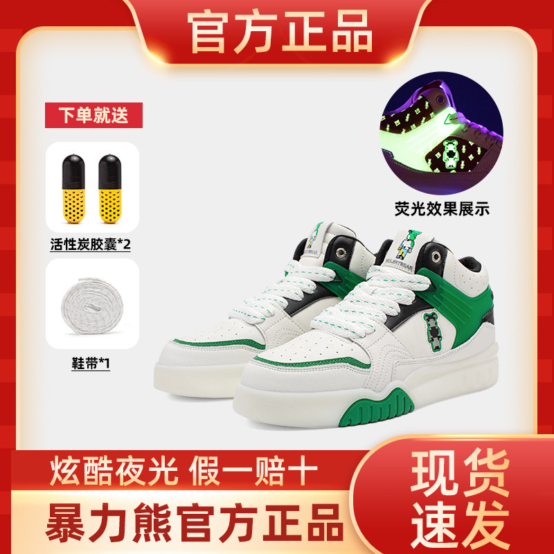 暴力熊秋冬新款高帮板鞋男女同款情侣时尚荧光夜光百搭休闲鞋B108