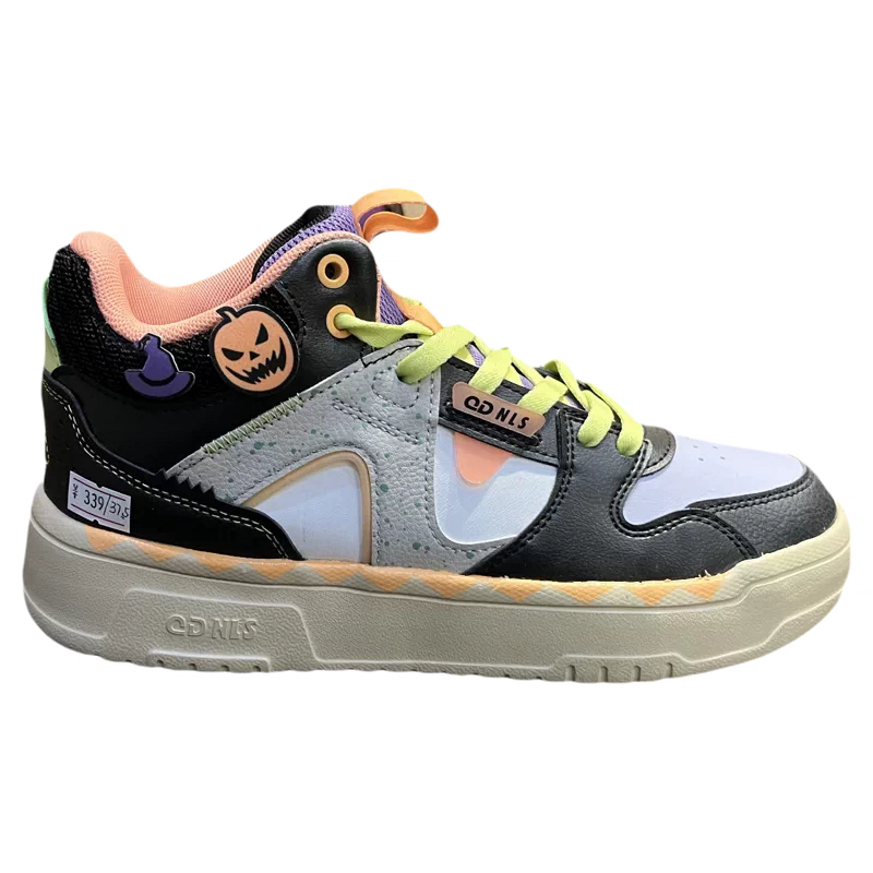 乔丹男女同款板鞋万圣节限定款黑白粉拼色荧光绿鞋带南瓜头37.5