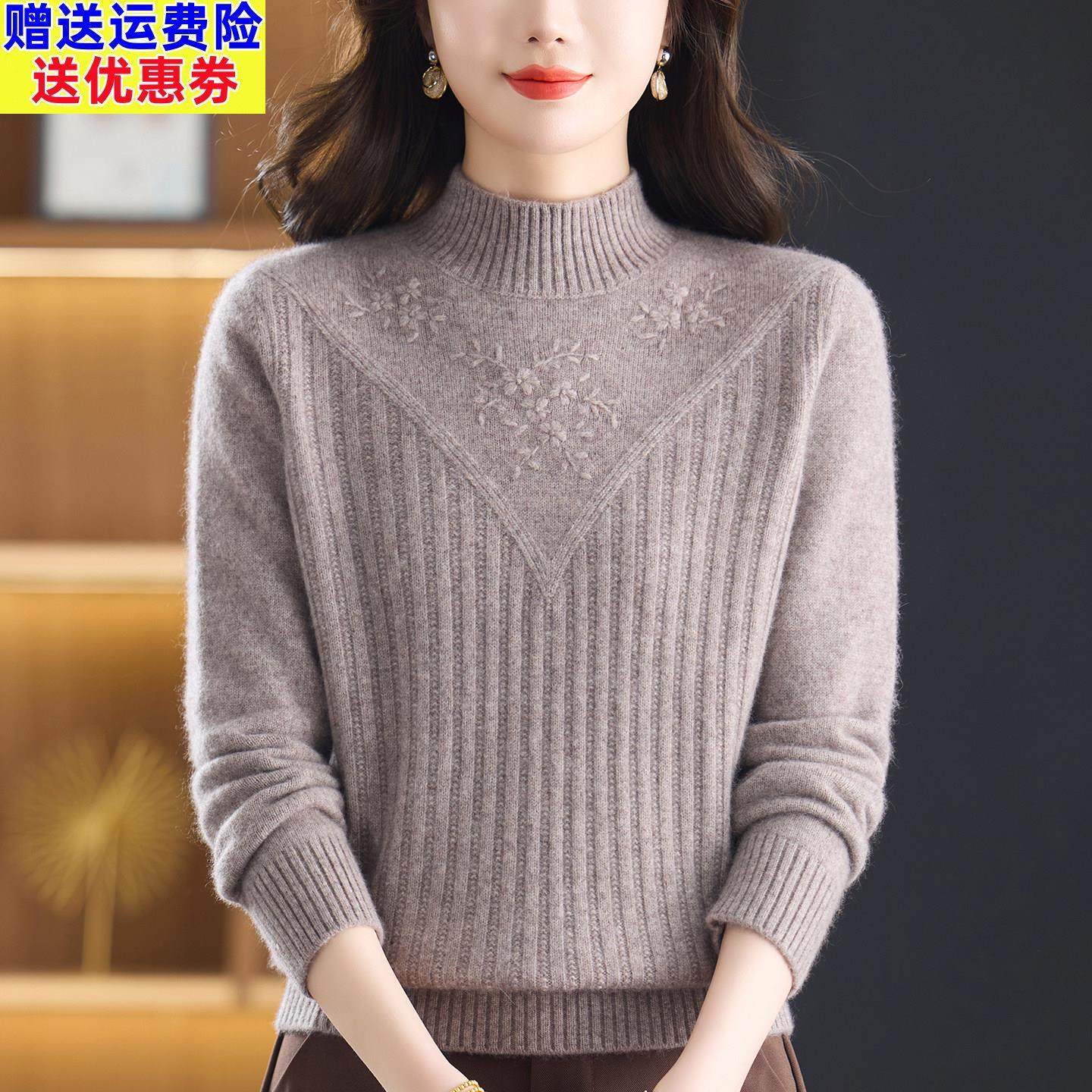 半高领加厚羊绒衫女秋冬新款中老年妈妈装气质毛衣打底衫针织上衣