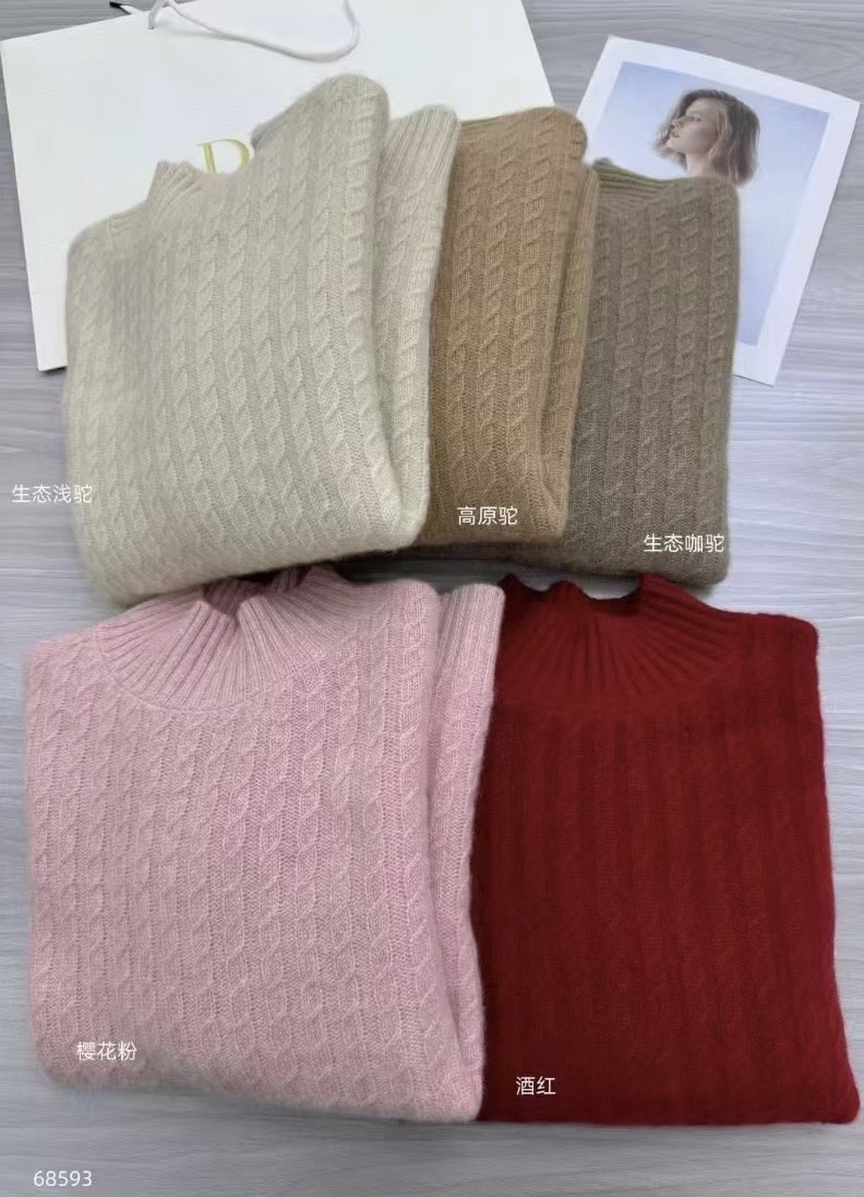 24秋冬新款半高领加厚羊绒衫女小扭花亲肤保暖宽松针织衫毛衣打底