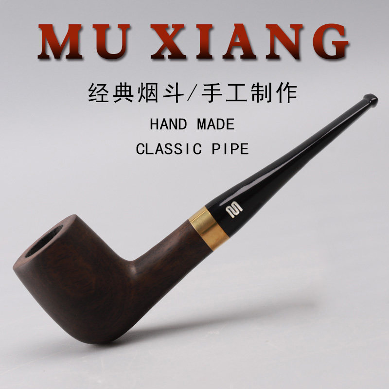 MUXIANG烟斗手工实木烟斗黑檀木烟斗老式传统男士过滤烟斗具配件