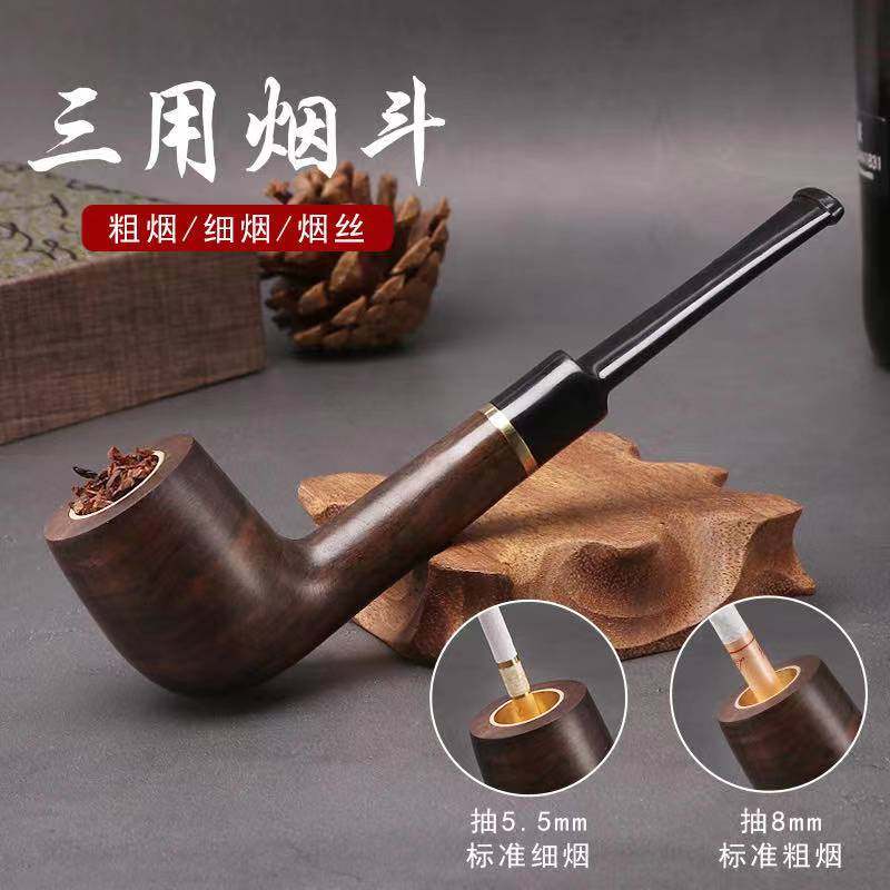 实木烟斗男士老式传统手工黑檀木烟丝斗黄铜金属锅粗细支烟丝三用