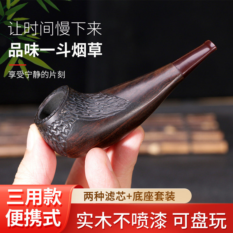 合旺黑檀木烟斗男士全套老式三用过滤便携小号烟袋锅烟丝烟草专用