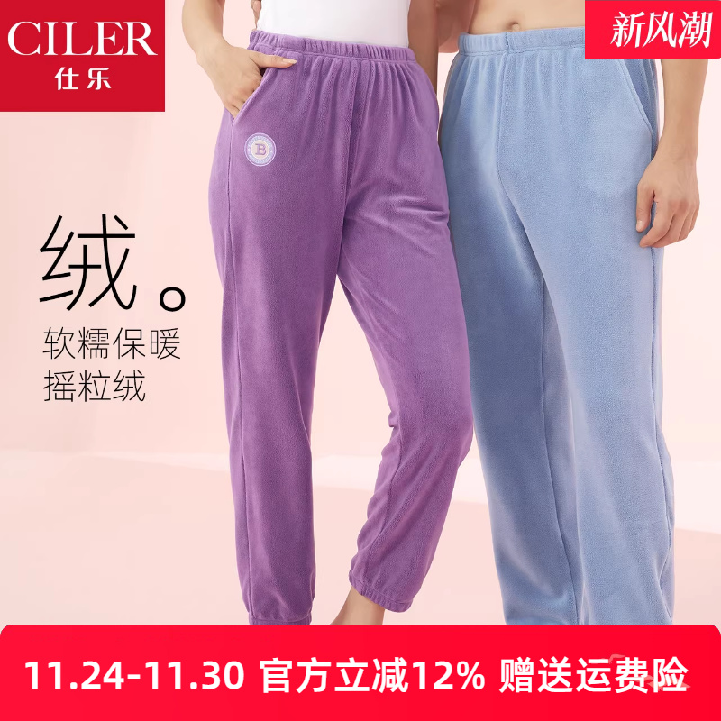 仕乐摇粒绒家居裤男秋冬保暖加厚睡裤女宽松舒适可外穿本命年红色