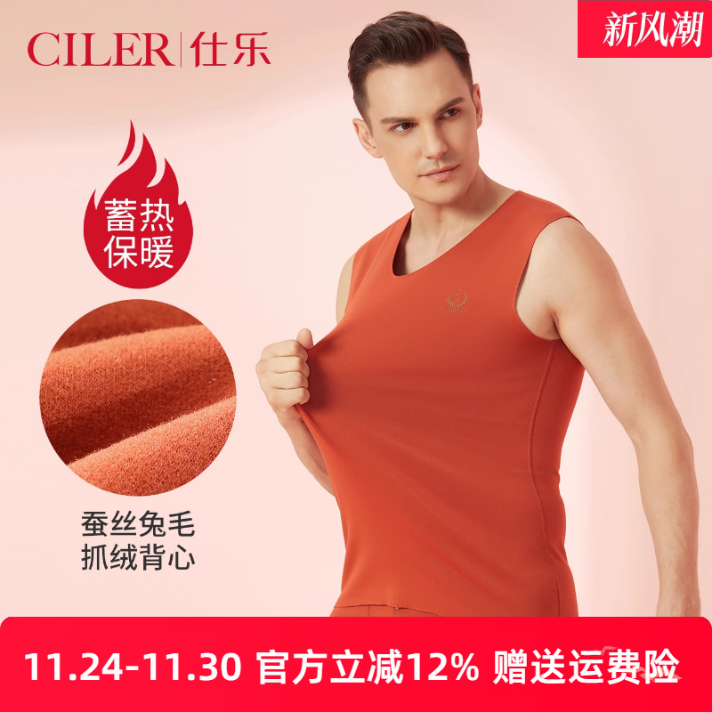 仕乐秋冬季中厚发热纤维保暖宽肩背心男贴身无痕砍袖背心女款大码