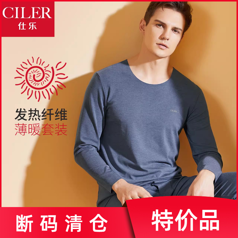 仕乐男款发热纤维保暖上衣羊绒蛋白超薄秋衣圆领打底线衣大码单件