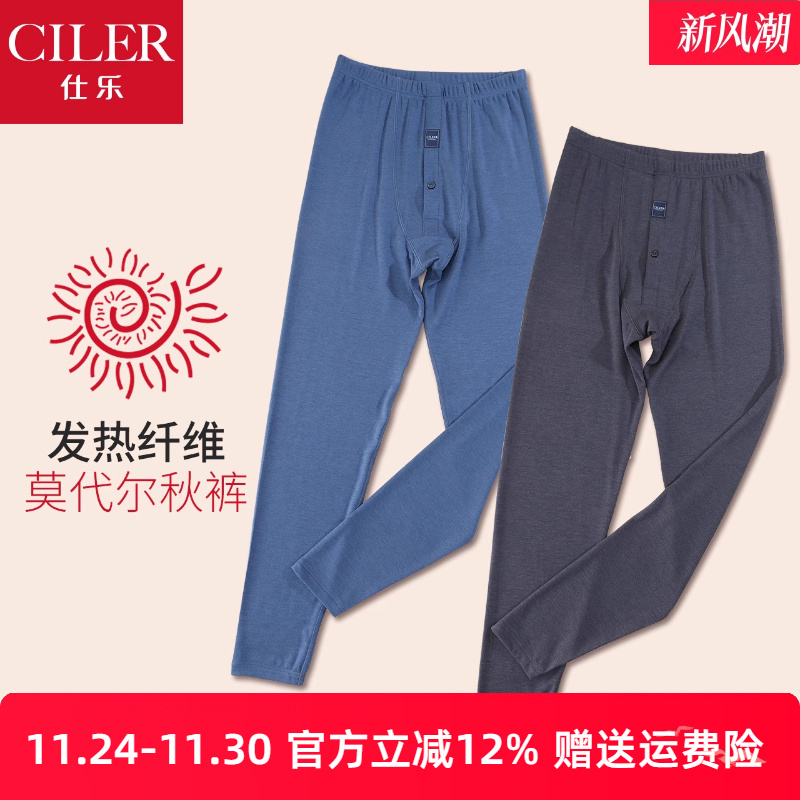 仕乐莫代尔男士发热保暖秋裤大码薄款基础打底款高弹舒适贴身线裤