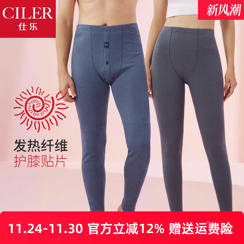 仕乐羊绒蚕丝大贴片发热纤维保暖单裤加厚男士冬季高腰保暖裤女款