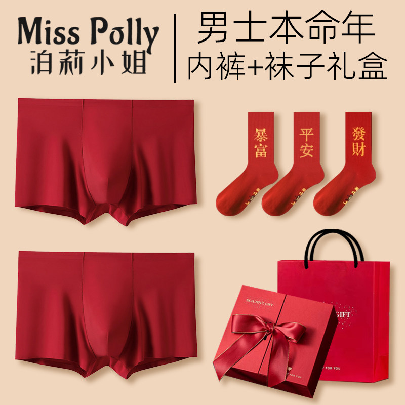 2026马年红色本命年男士内裤袜子短裤衩内衣服套装属马的礼物男款