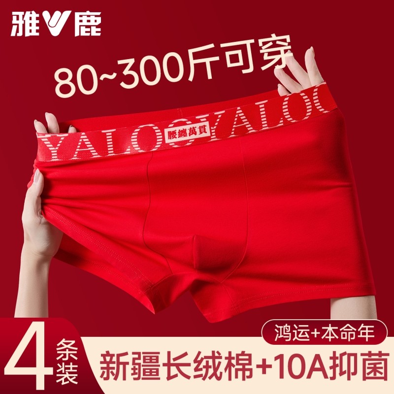 雅鹿大红色本命年男士内裤加肥加大码纯棉属马年男生短裤 多规格