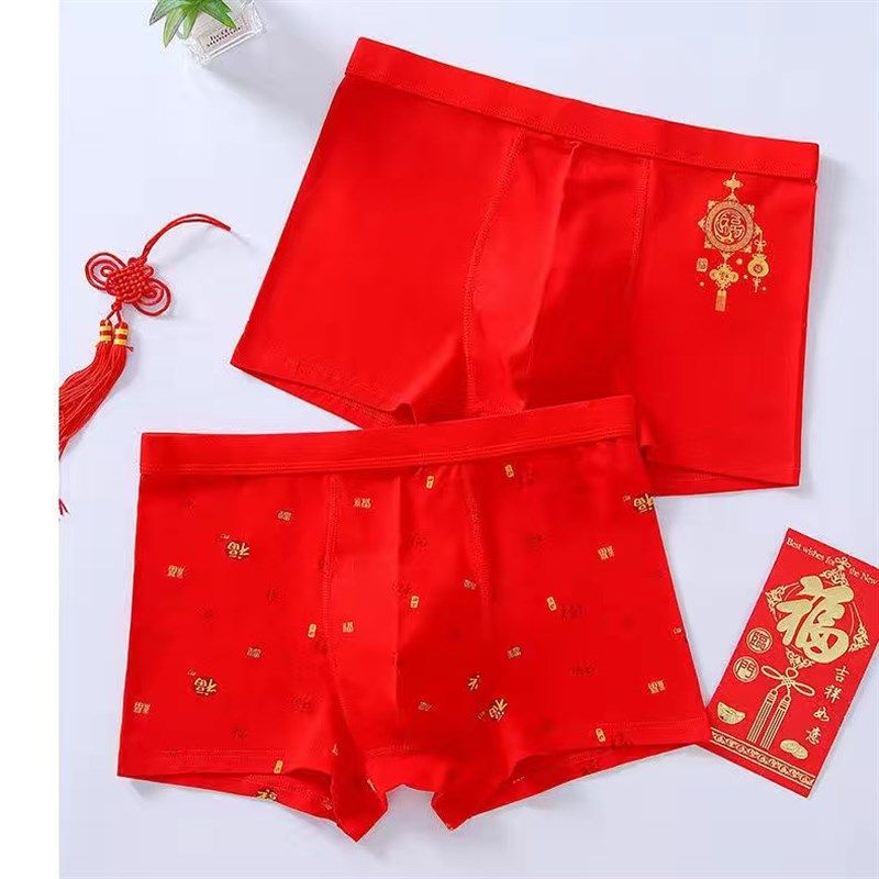 2023属兔年大红色本命年男士内裤男生四角裤纯棉结婚礼物四角短裤