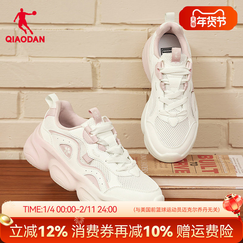 乔丹云朵休闲鞋软底女鞋秋季新款网面透气厚底增高女子粉色运动鞋