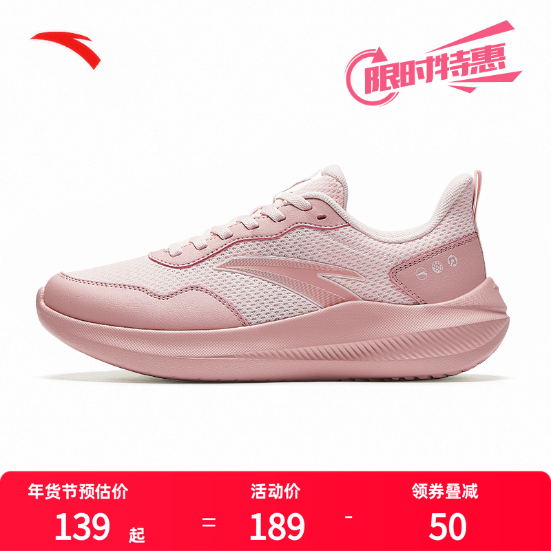安踏女鞋跑步鞋2025新款秋冬网鞋休闲鞋女款官方旗舰粉色运动鞋女