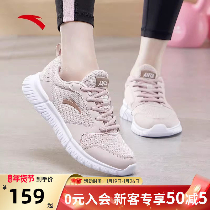 安踏粉色运动鞋女鞋冬季新款正品轻便透气网面软底不累脚跑步鞋子
