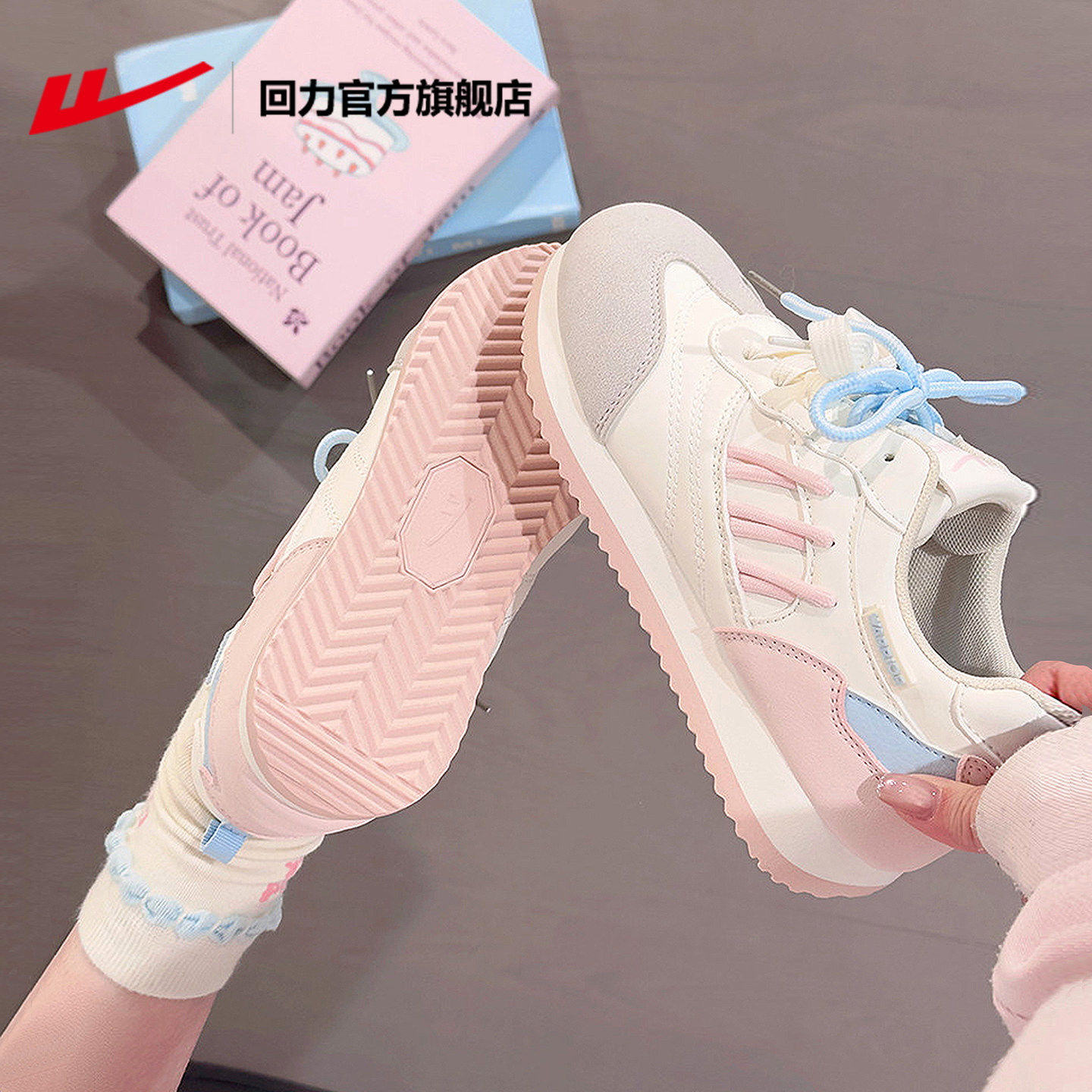 回力官方旗舰店德训鞋女鞋2026春季新款厚底小白鞋粉色运动鞋女款