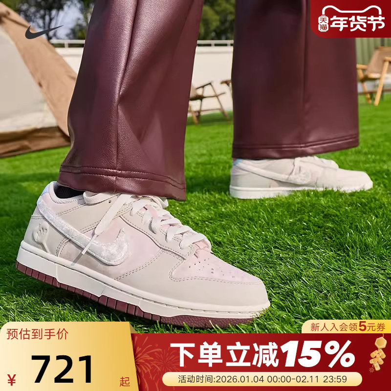 Nike耐克女鞋马年情人节限定DUNK粉色毛绒大勾运动板鞋IQ1145-610