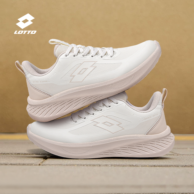 乐途女鞋休闲跑步鞋春季新款百搭防泼水皮面减震百搭粉色运动鞋子