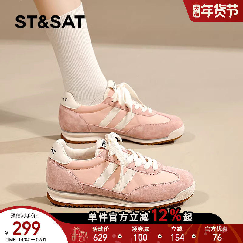 星期六厚底粉色运动鞋轻便德训鞋2025秋新款休闲透气小白阿甘鞋女