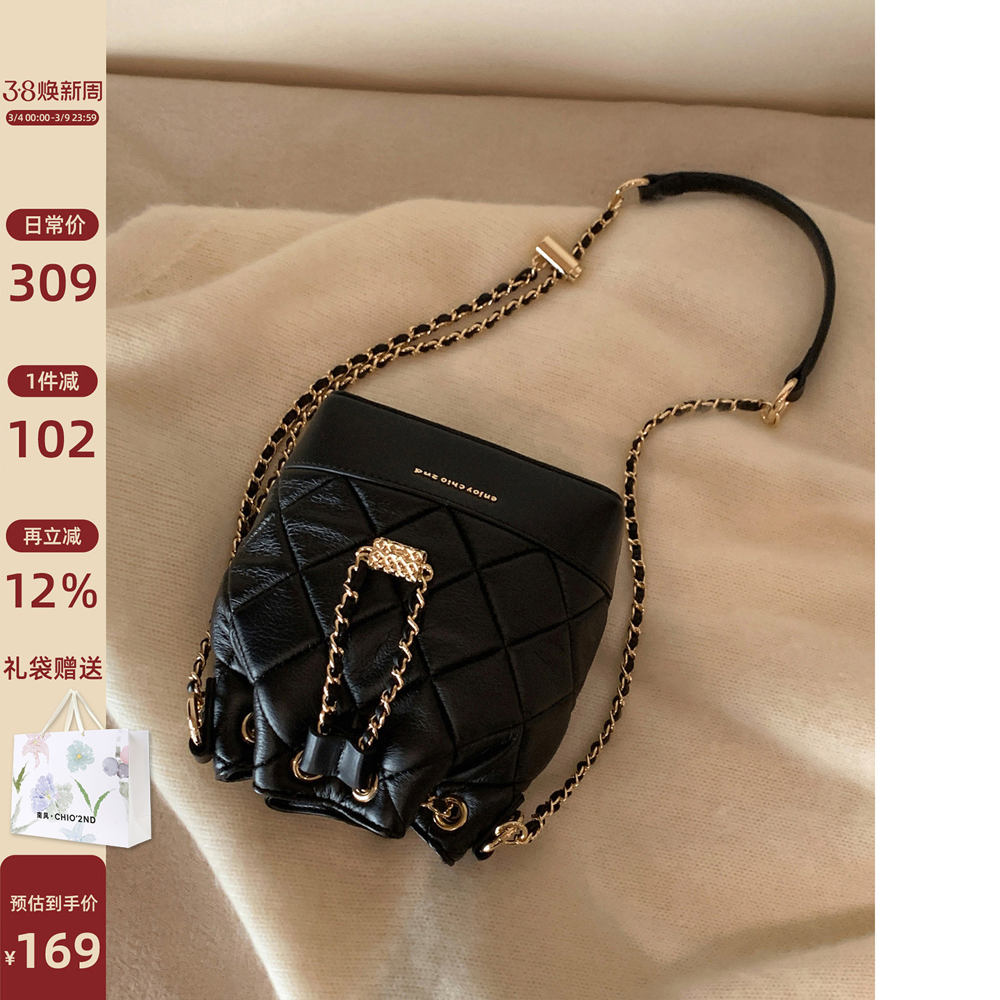 南风Chio2nd 月光织锦水桶包包女秋冬编织包精致链条单肩斜挎小包