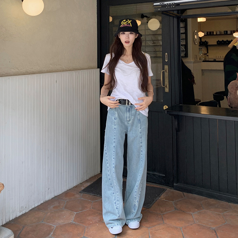 胖mm大码女装美式工装牛仔裤女秋季新款高腰裤子设计感阔腿拖地裤