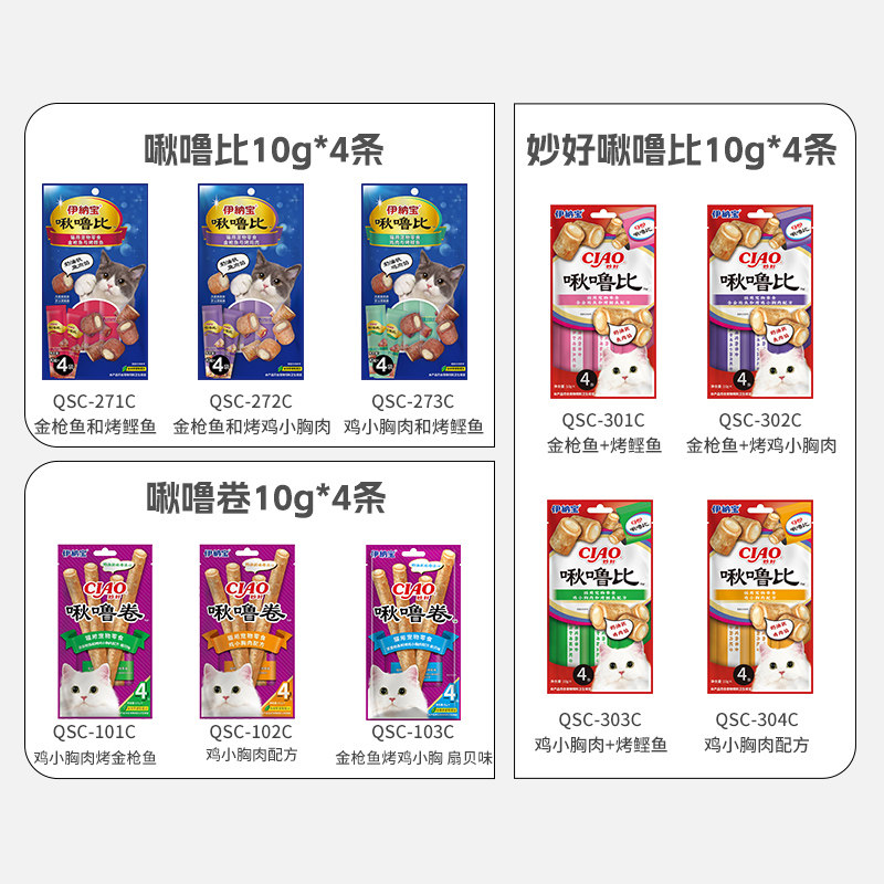 日本伊纳宝猫零食啾噜比幼猫粮夹心软肉干营养奖励猫饼干磨牙12支