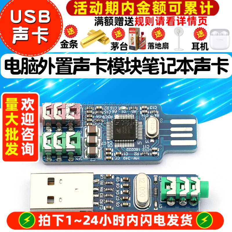 免驱USB声卡 电脑外置声卡模块笔记本声卡 CM108 USB声卡 芯片