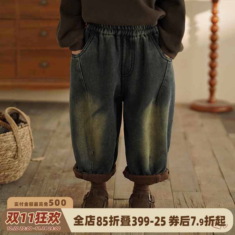 砚台家韩范复古女童哈伦裤女孩长裤宝宝加绒裤子儿童牛仔裤秋冬款