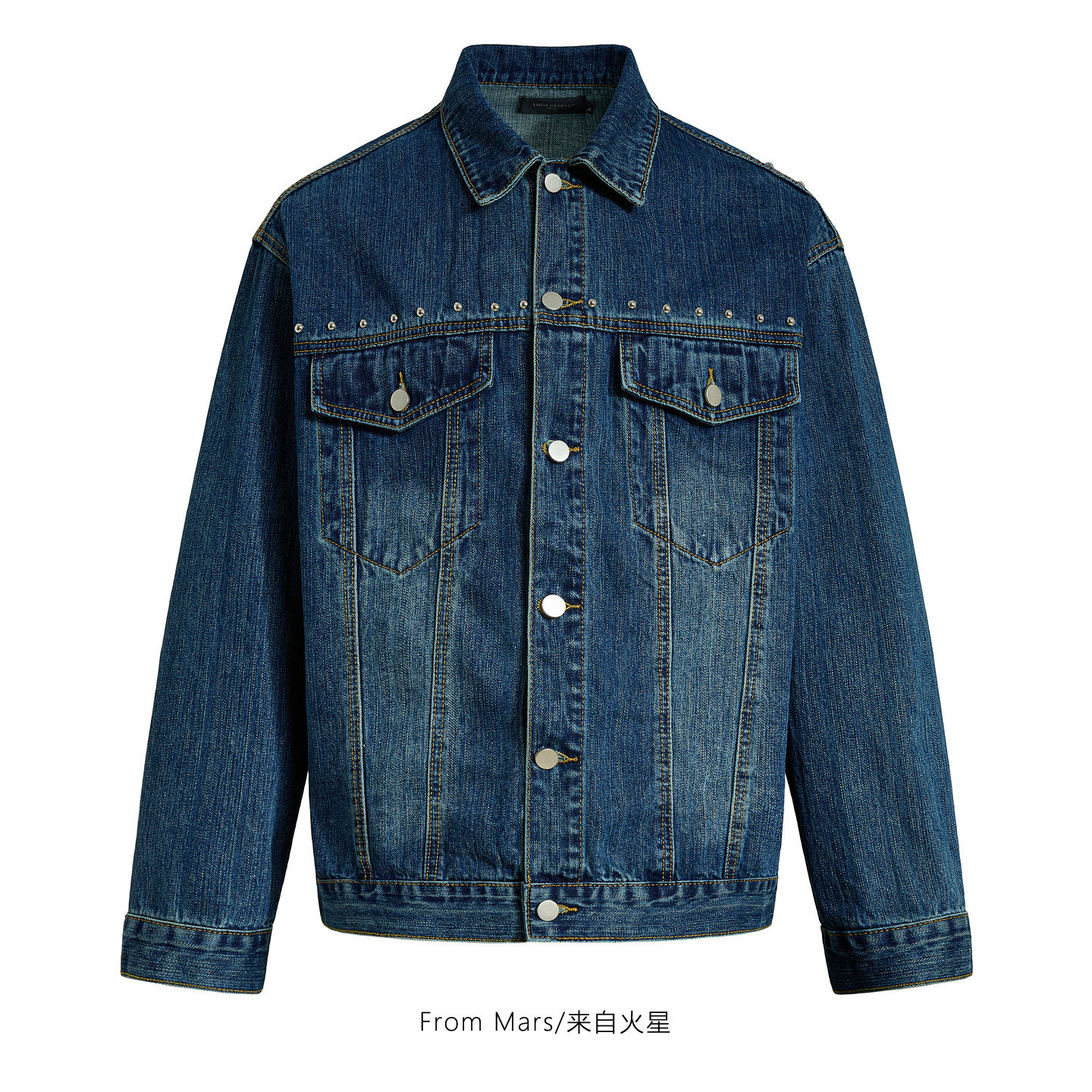 From Mars 有故事感 日系复古宽松翻领双口袋工装牛仔夹克外套BF