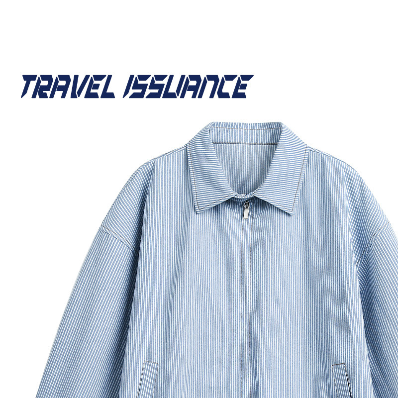 TRAVEL ISSUANCE 缓存美好 街头休闲复古条纹宽松翻领夹克外套BF