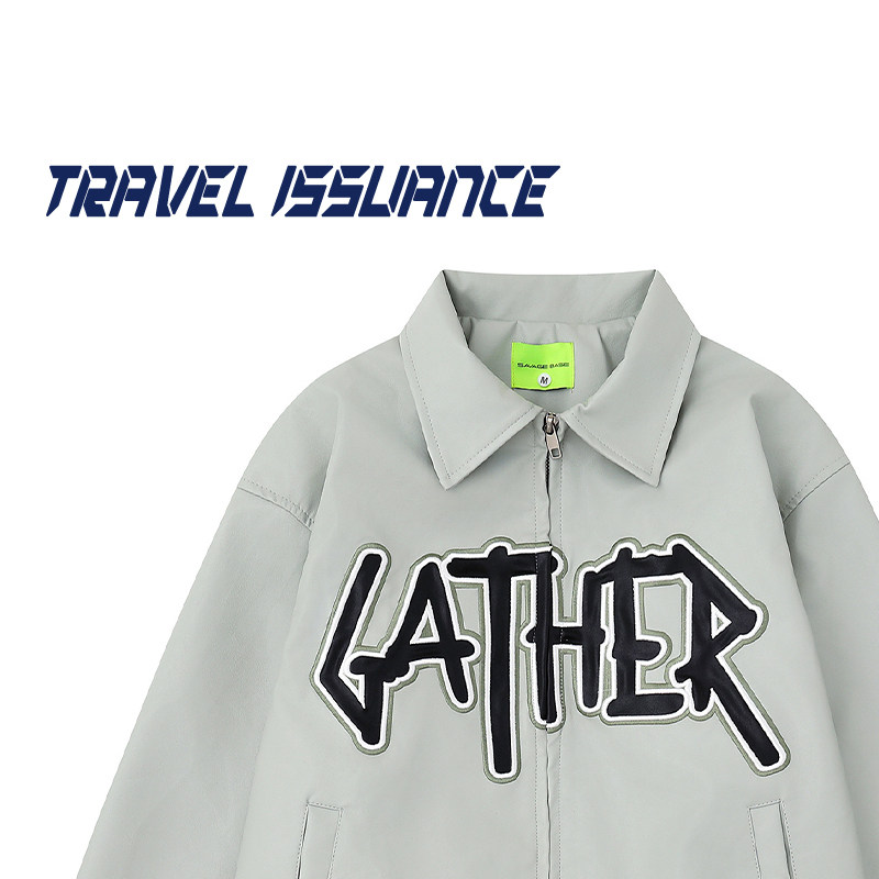 TRAVEL ISSUANCE 也要随心 日系街头宽松字母刺绣翻领夹克外套BF