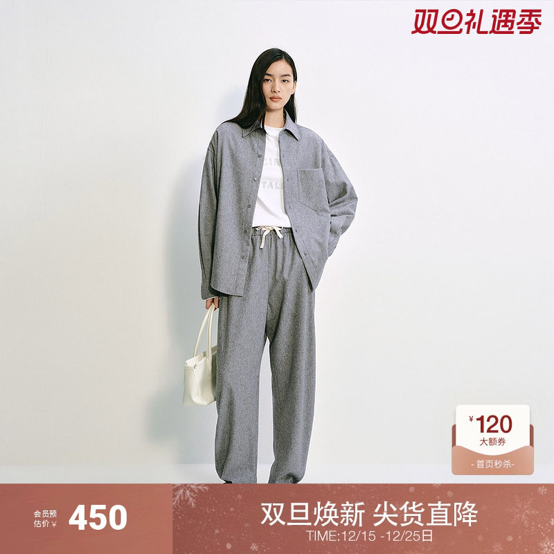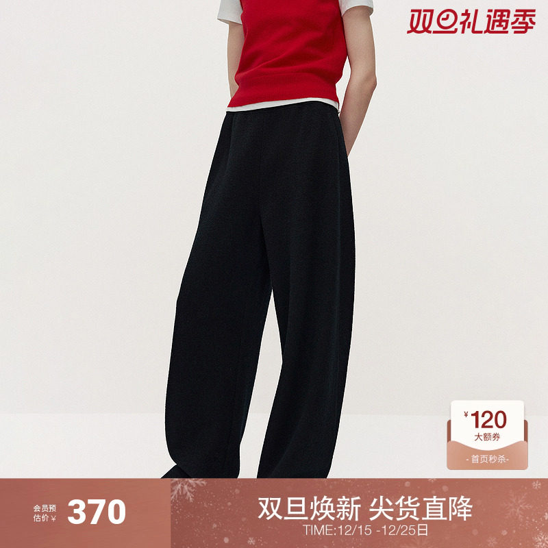 曼曼家2025冬新款时尚松紧腰宽松显瘦百搭运动休闲羊毛呢长裤女潮