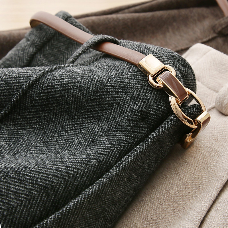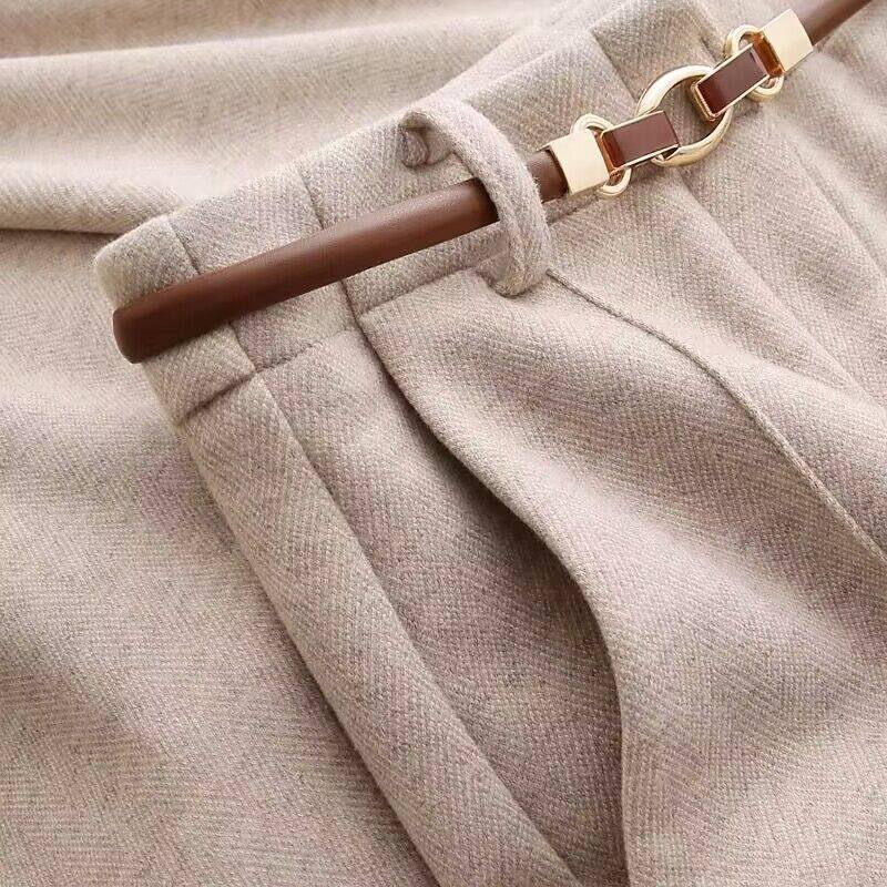 - 秋冬韩版高腰九分毛呢阔腿裤女