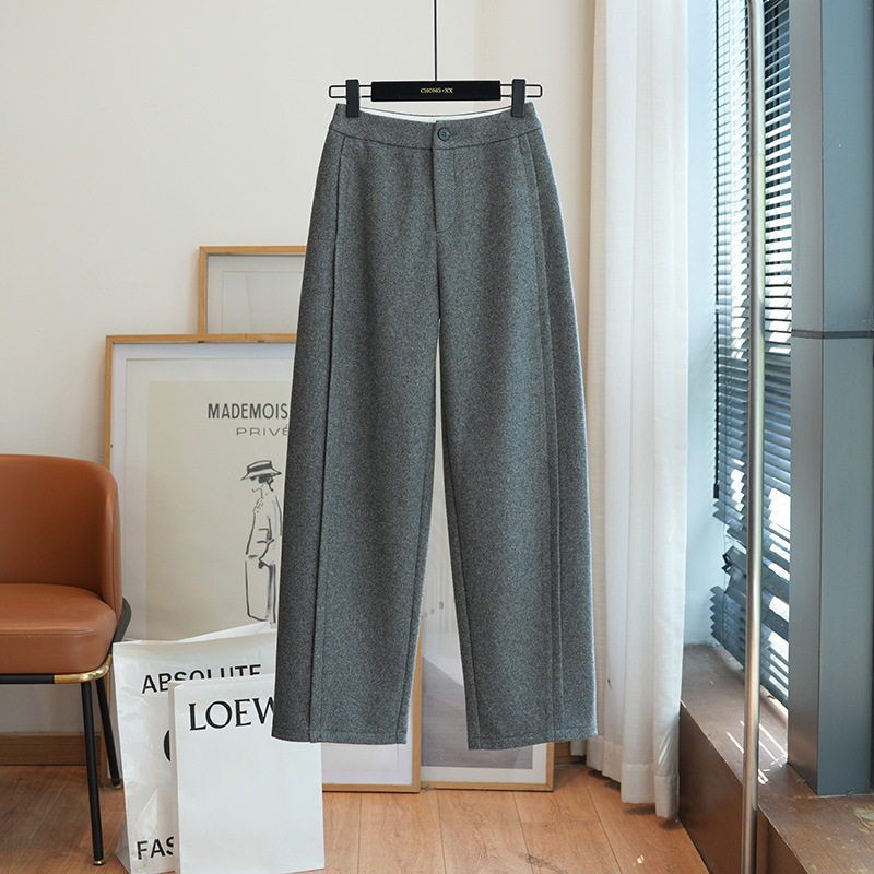 显瘦C位!羊毛呢休闲裤女双走线窄版直筒阔腿裤秋冬加绒高腰长裤