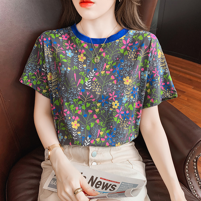 韩版高档印花女士t恤短袖夏季时尚宽松遮肉洋气显瘦体恤上衣ins潮