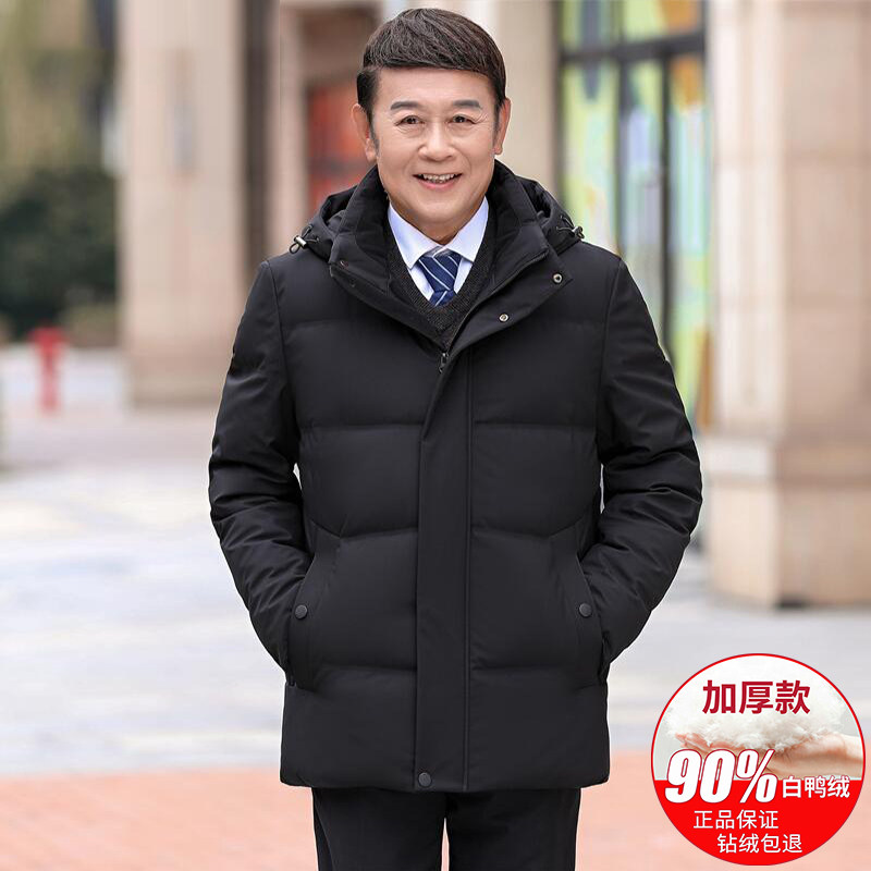冬季新款中年男士羽绒服加厚款50岁中老年父亲冬装保暖白鸭绒外套