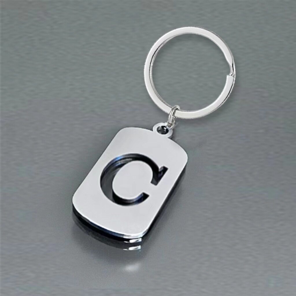 跨境26抛光镂空英文字母不锈钢钥匙扣简约个性钥匙链背包汽车挂件