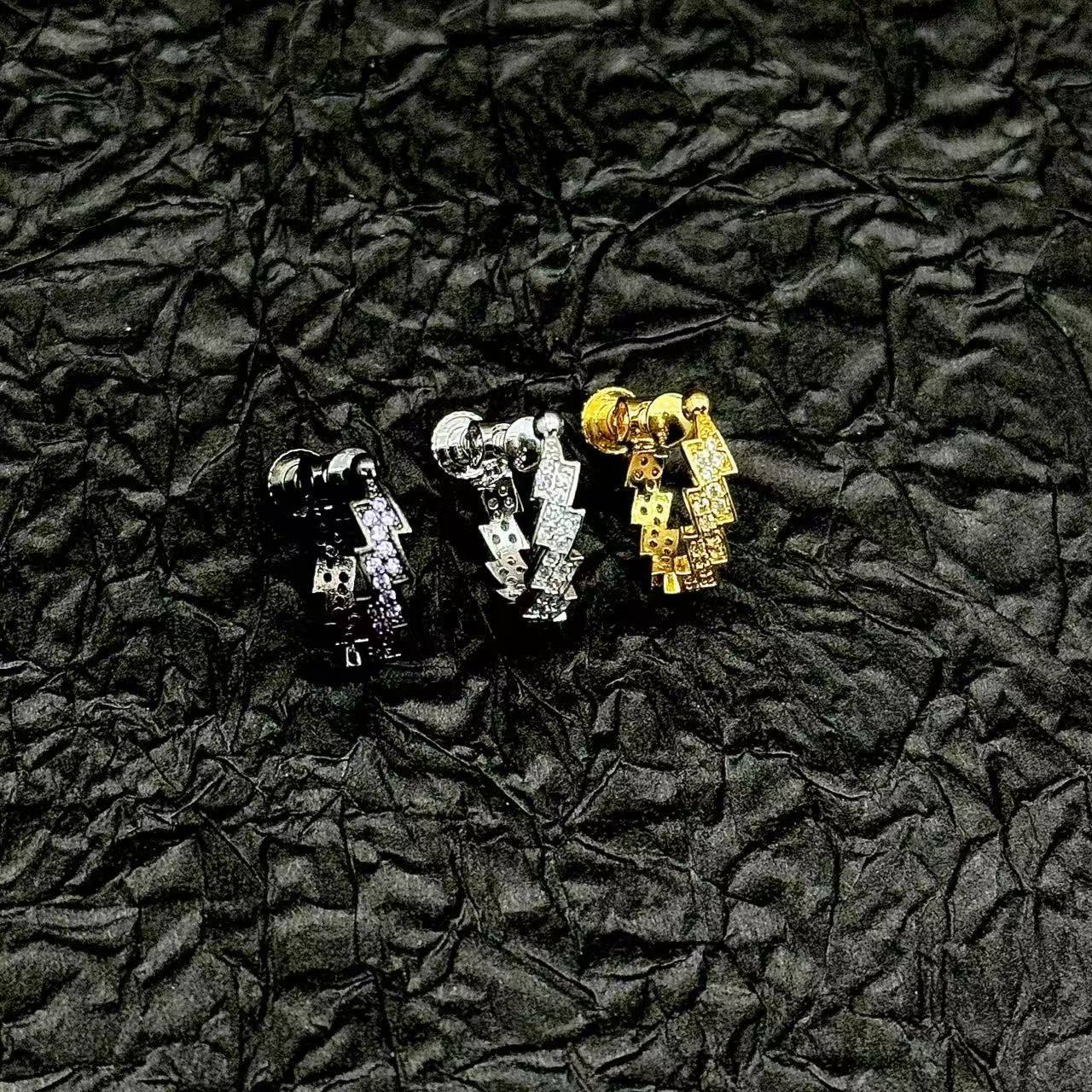 闪电锆石微镶无耳洞耳夹男高级感百搭精致小众螺纹耳环女耳钉耳饰