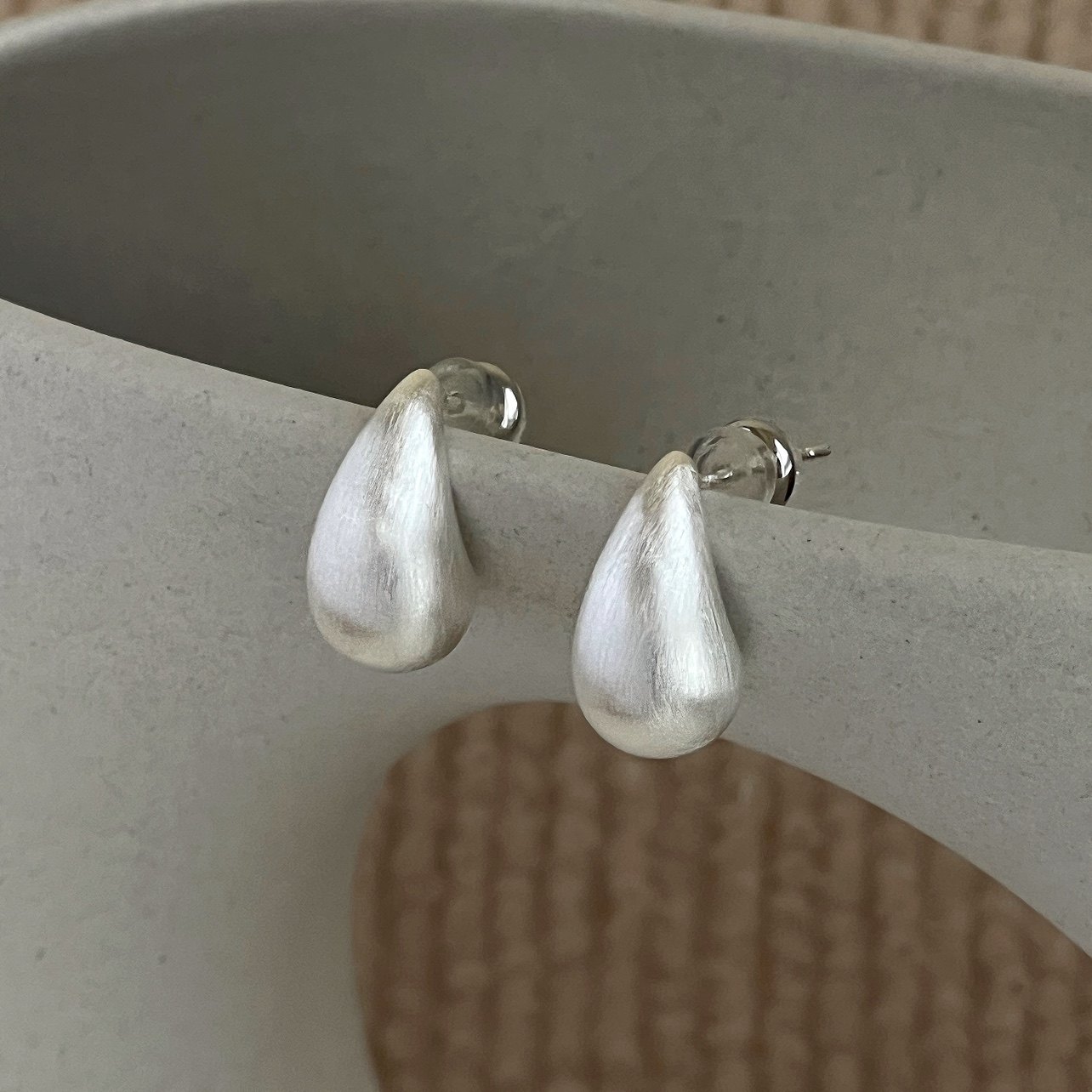 TONE银色手工拉丝水滴耳夹蚊香盘高级感简约清冷百搭无耳洞女耳钉