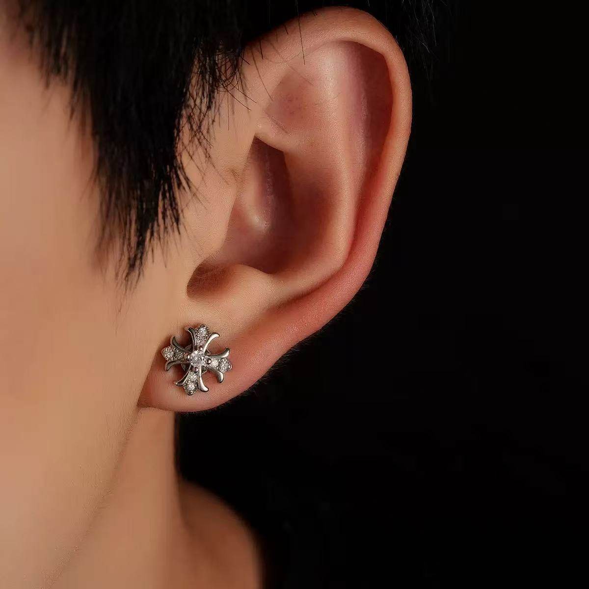 新款锆石无耳洞耳夹男士潮流痞帅高级感欧美嘻哈十字架耳环女耳钉