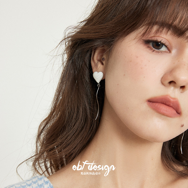 耳边风 告白气球 原创爱心长款圆脸适合夏天的白色耳环少女耳钉
