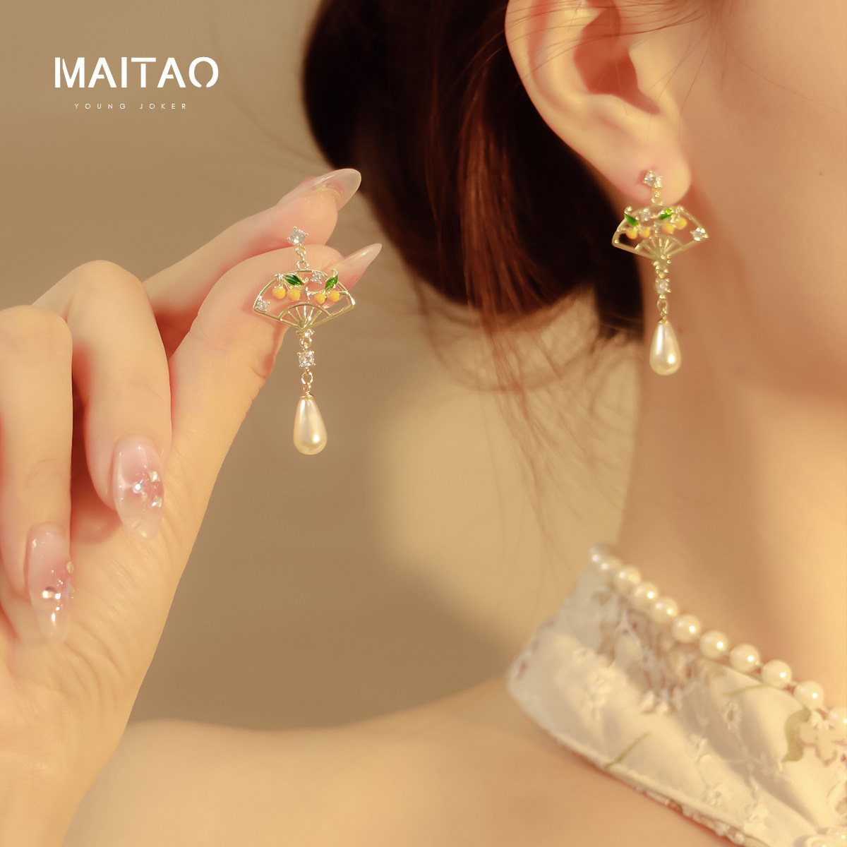 「爱丽丝梦境」仙女花环人鱼姬珍珠吊坠硅胶耳夹无耳洞耳饰女耳钉