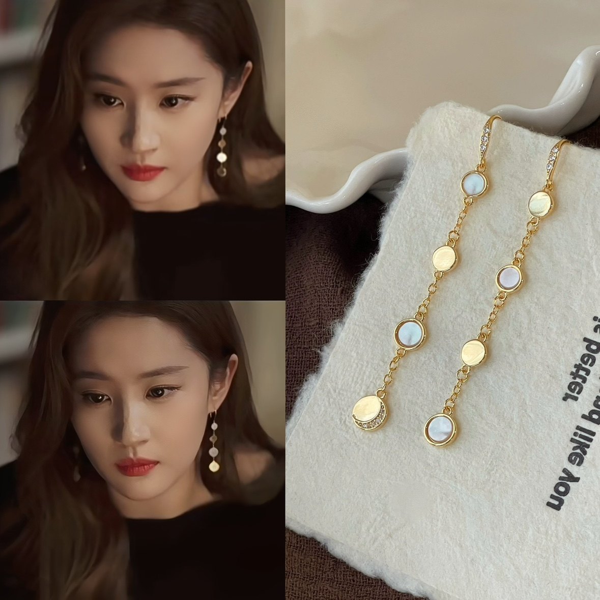 「碎片」刘亦菲同款长款流苏耳饰蚊香盘耳夹女耳钉耳环气质显脸小