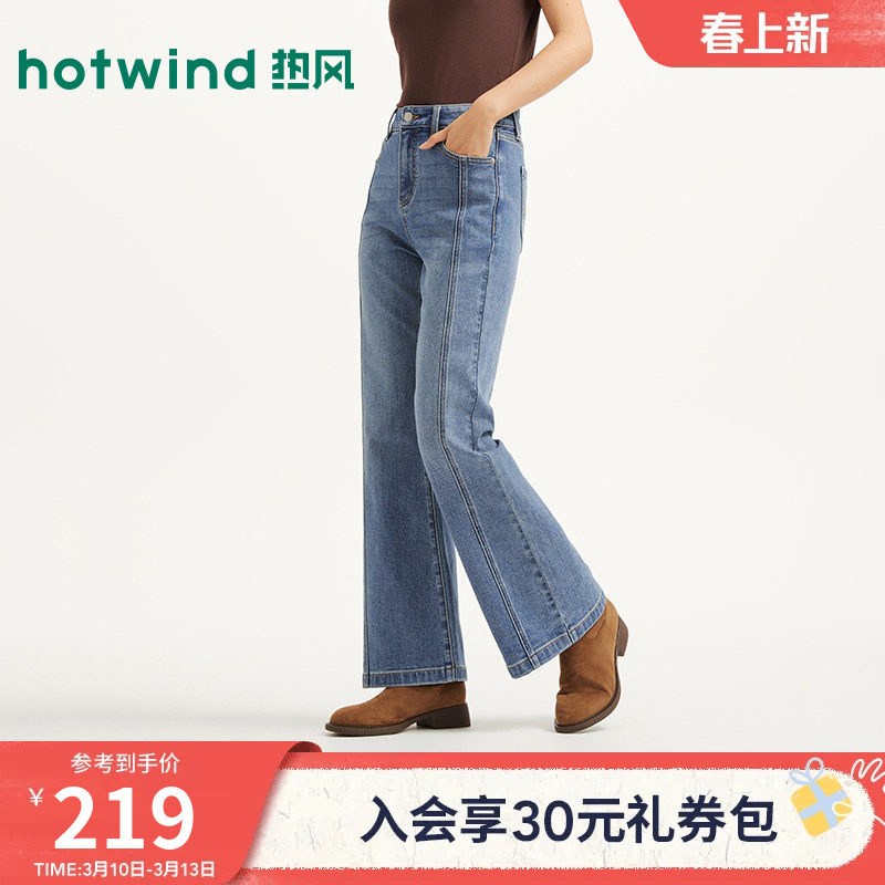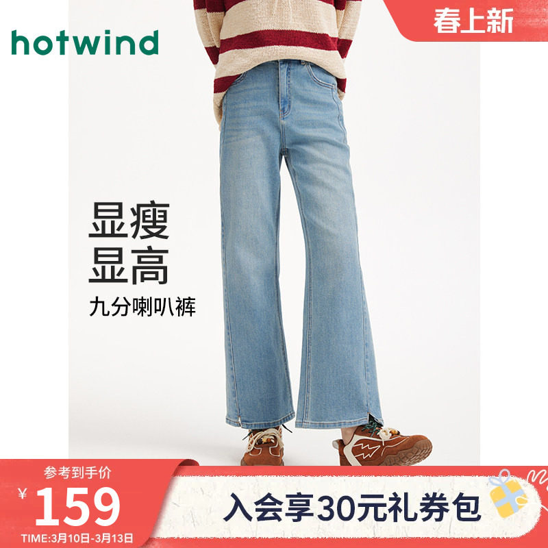 热风女士微喇裤牛仔裤2026年春季新款九分喇叭牛仔裤显瘦显高长裤