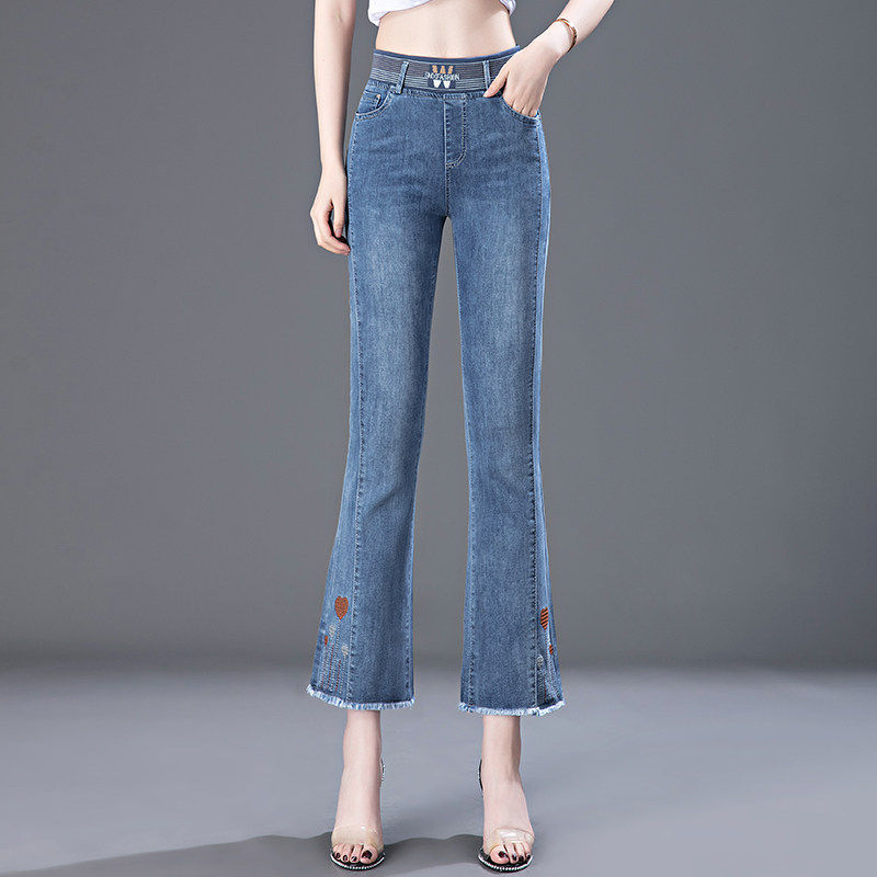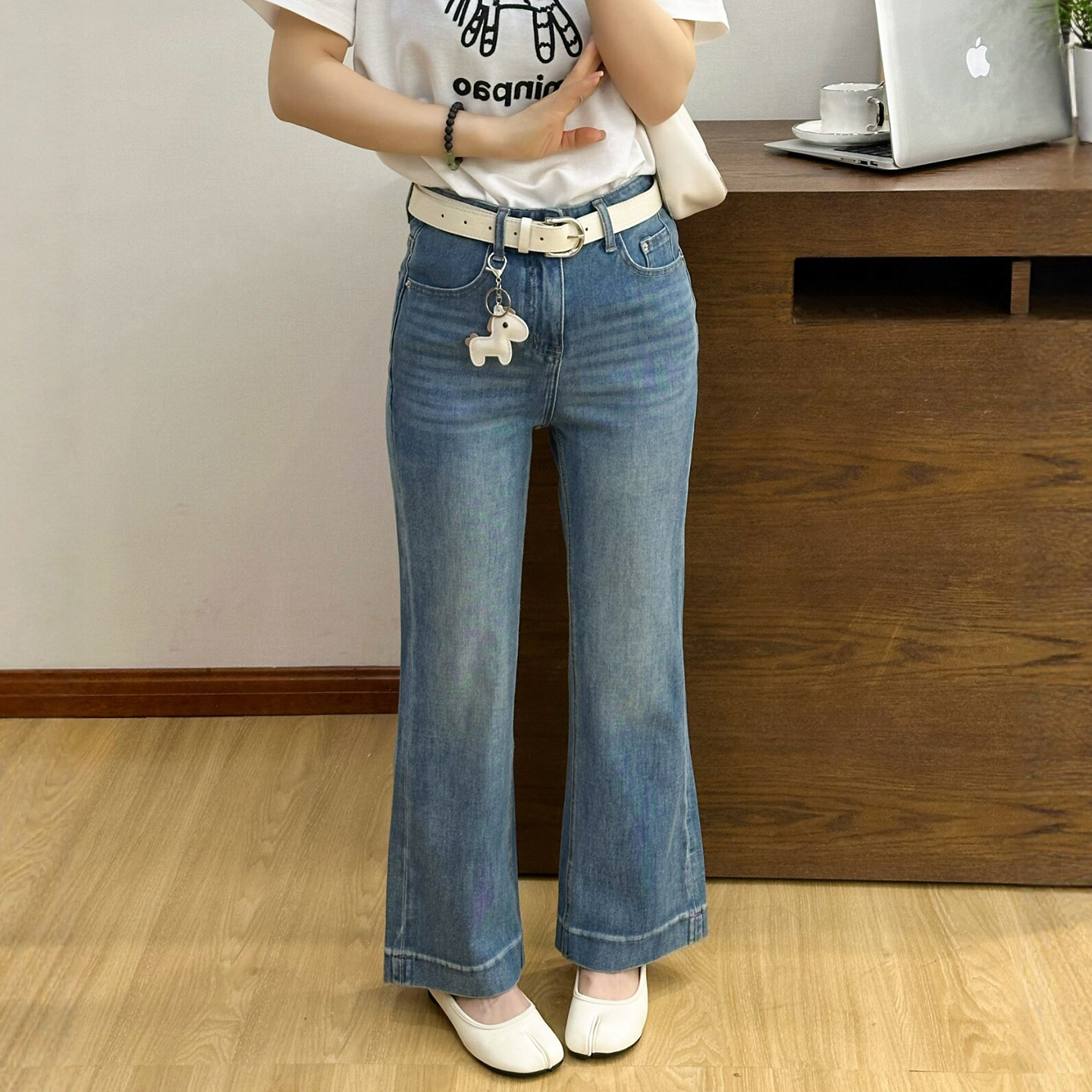 古早美女丰胯细腰微喇九分牛仔裤女气质高腰提臀修身直筒喇叭长裤