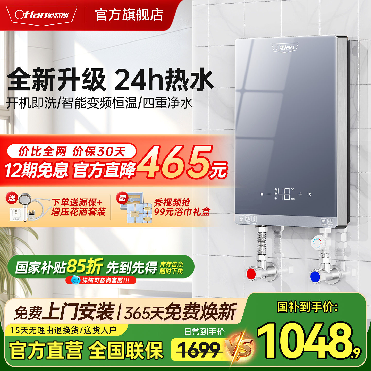 Otlan/奥特朗即热式电热水器恒温洗澡淋浴家用小型租房速热过水热